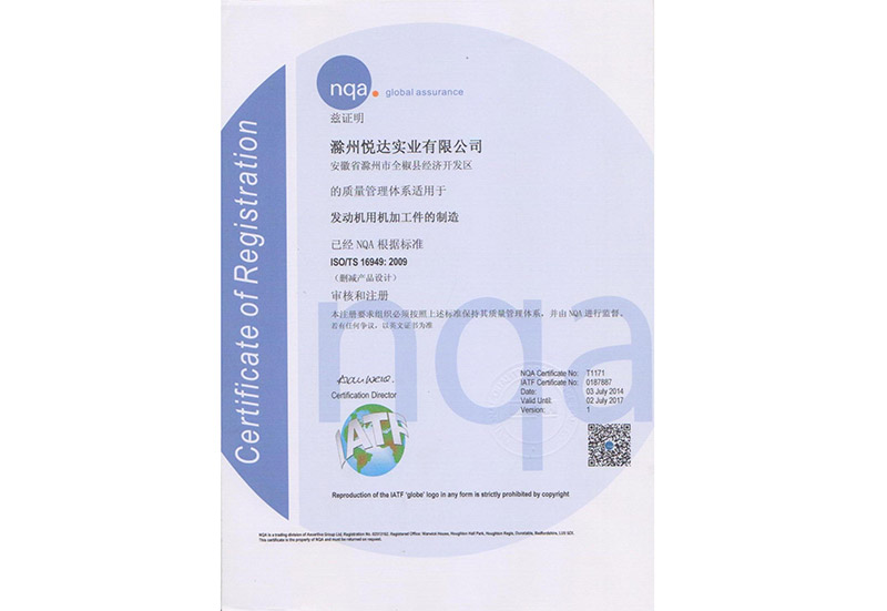 悦达质量管理证书